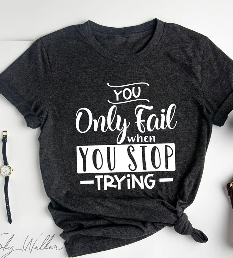 You Only Fail When You Stop Trying Shirt | Motivational T-Shirts USA